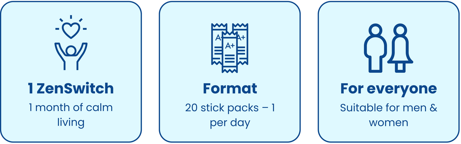 One month in and I’m really happy with ZenSwitch. Taking it each morning has become a habit and I genuinely feel calmer during my workdays. I stress much less, I can organize myself more calmly, and I sleep better at night. I’ll be buying more — the taste is nice and it did exactly what I expected. Happy to chat if anyone wants details !